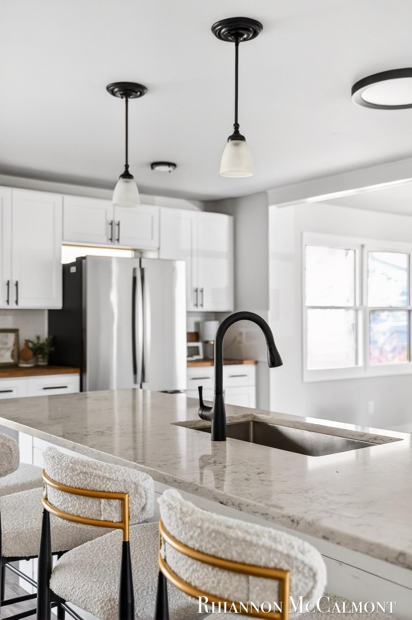 Move-in ready 5-bedroom, 2.5-bath home located in Spring Lake. This property offers a functional layout with two walk-out levels, providing additional living space and flexibility for a variety of uses.Main floor living area features a fireplace, and the primary bedroom includes an en suite bathroom for added comfort and convenience. Main floor laundry adds everyday ease.Enjoy the outdoor setting from the deck overlooking the backyard, ideal for entertaining or relaxing. Attached two-stall garage provides ample storage.With generous square footage and multiple living areas, this home presents a great opportunity for buyers seeking space and convenience in a desirable location.