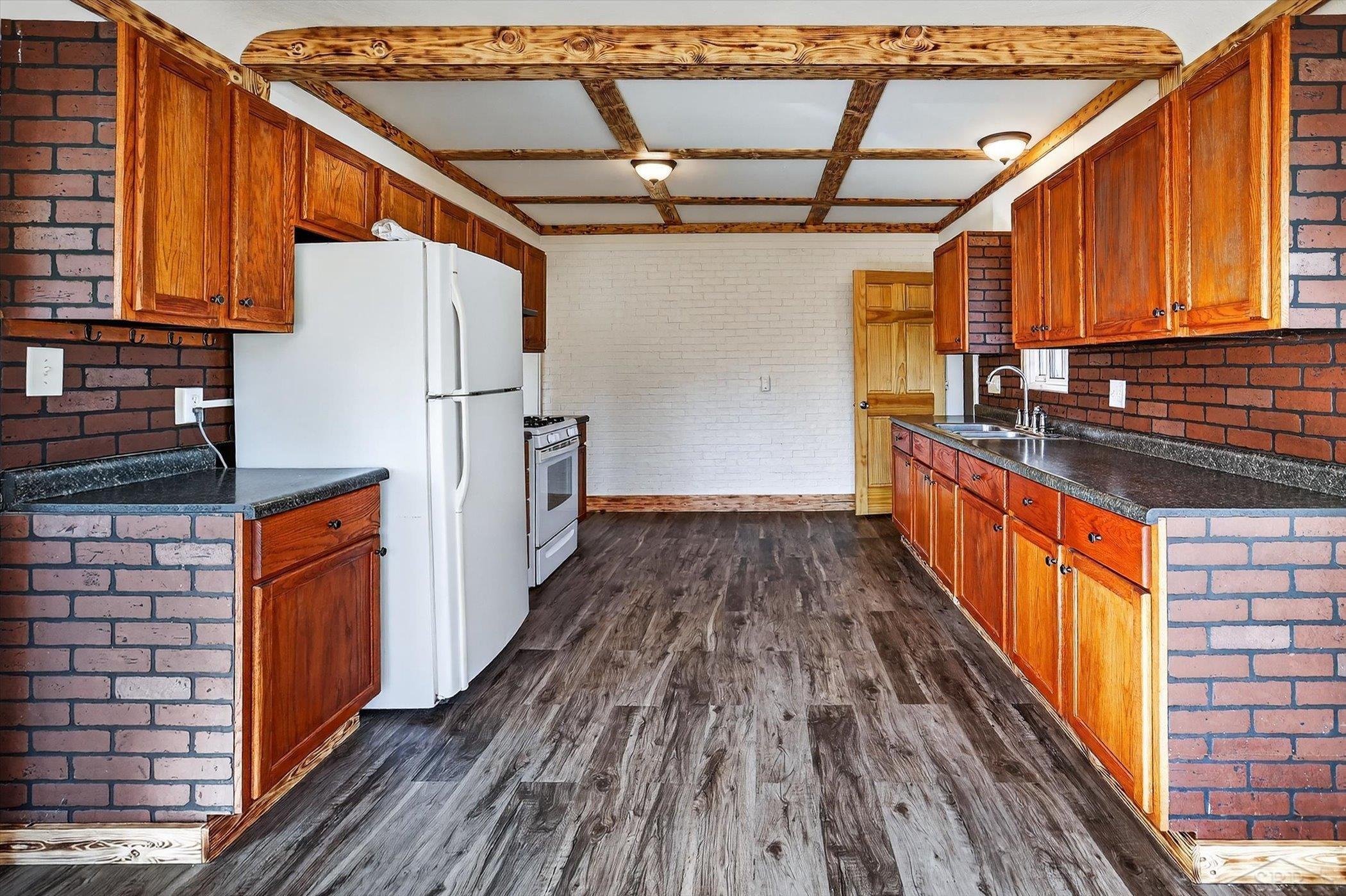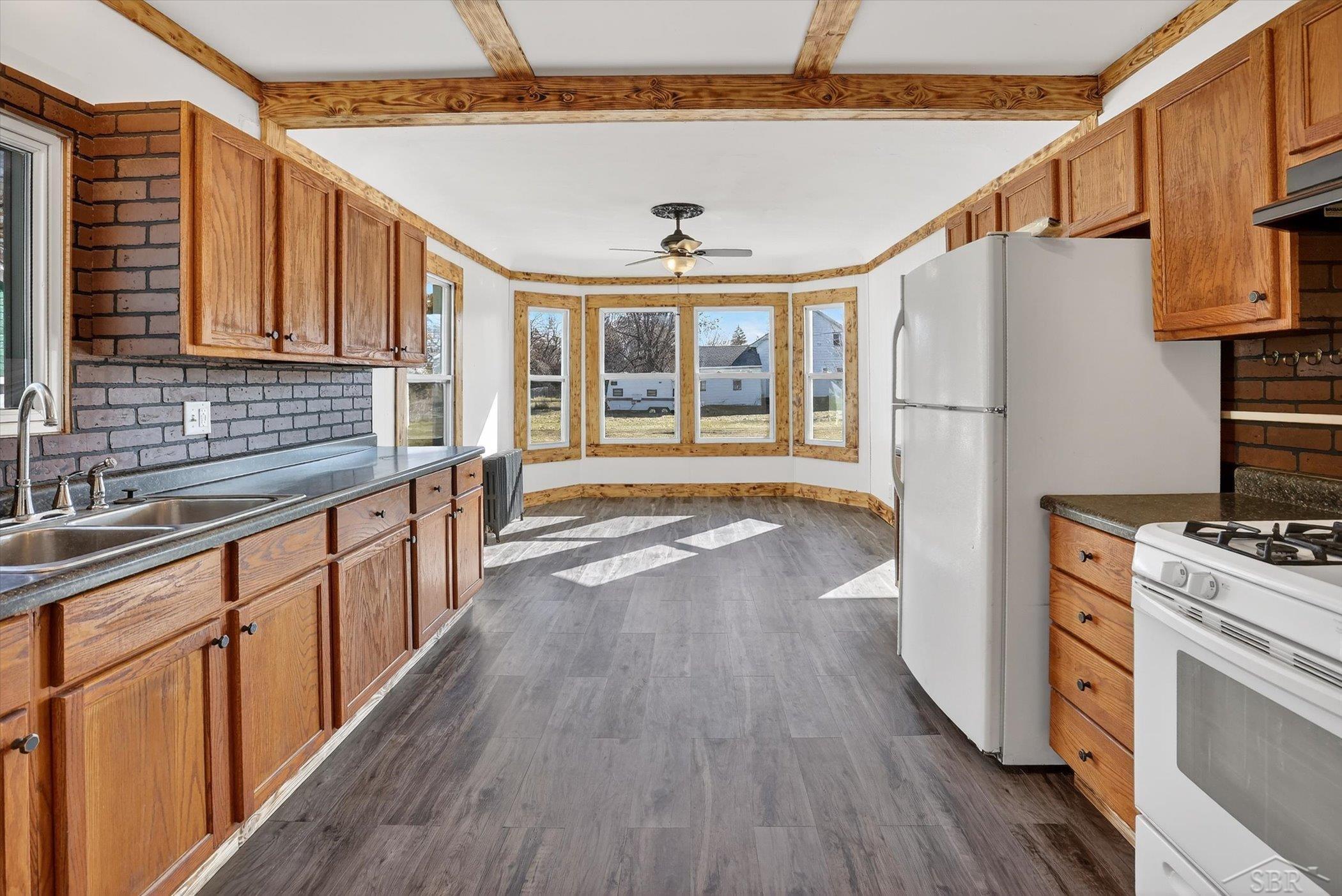 Click Your Heels… There’s No Place Like THIS Home on Kansas! She’s freshly updated! She’s bright, beautiful and sparkling clean! She’s move-in ready! And she’s full of character! From the moment you walk in you’ll notice the care that’s gone into it… brand new flooring throughout, fresh paint, and beautiful burned wood trim that gives the home a warm, rustic feel you just don’t see every day. The layout works incredibly well with true main-floor living. The large primary bedroom is privately situated on one side of the home, separated by the laundry area, while the other two bedrooms sit on the opposite side, making it a great setup for families, guests, or even multi-generational living. The bathroom renovation is absolutely gorgeous with tile work and custom touches that feel straight out of a Pinterest board. You’ll also love the sun-filled bay windows (windows are new too!), the spacious kitchen, and the fact that all the major updates are already done – including new windows and a roof with plenty of life left (estimated 10-15 years). You’ll still have plenty of storage with attic space and a large detached garage. At $124,900, finding something this clean, this updated, and this full of charm is getting harder and harder. If you’re looking for affordable, move-in ready, and adorable… this one deserves a look. Call your favorite realtor! Ask about first-time home buyer programs!