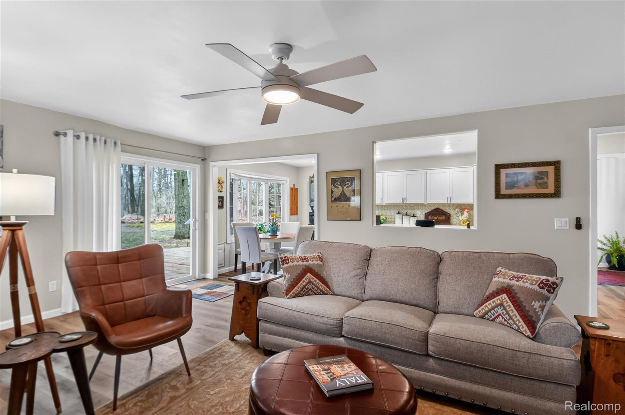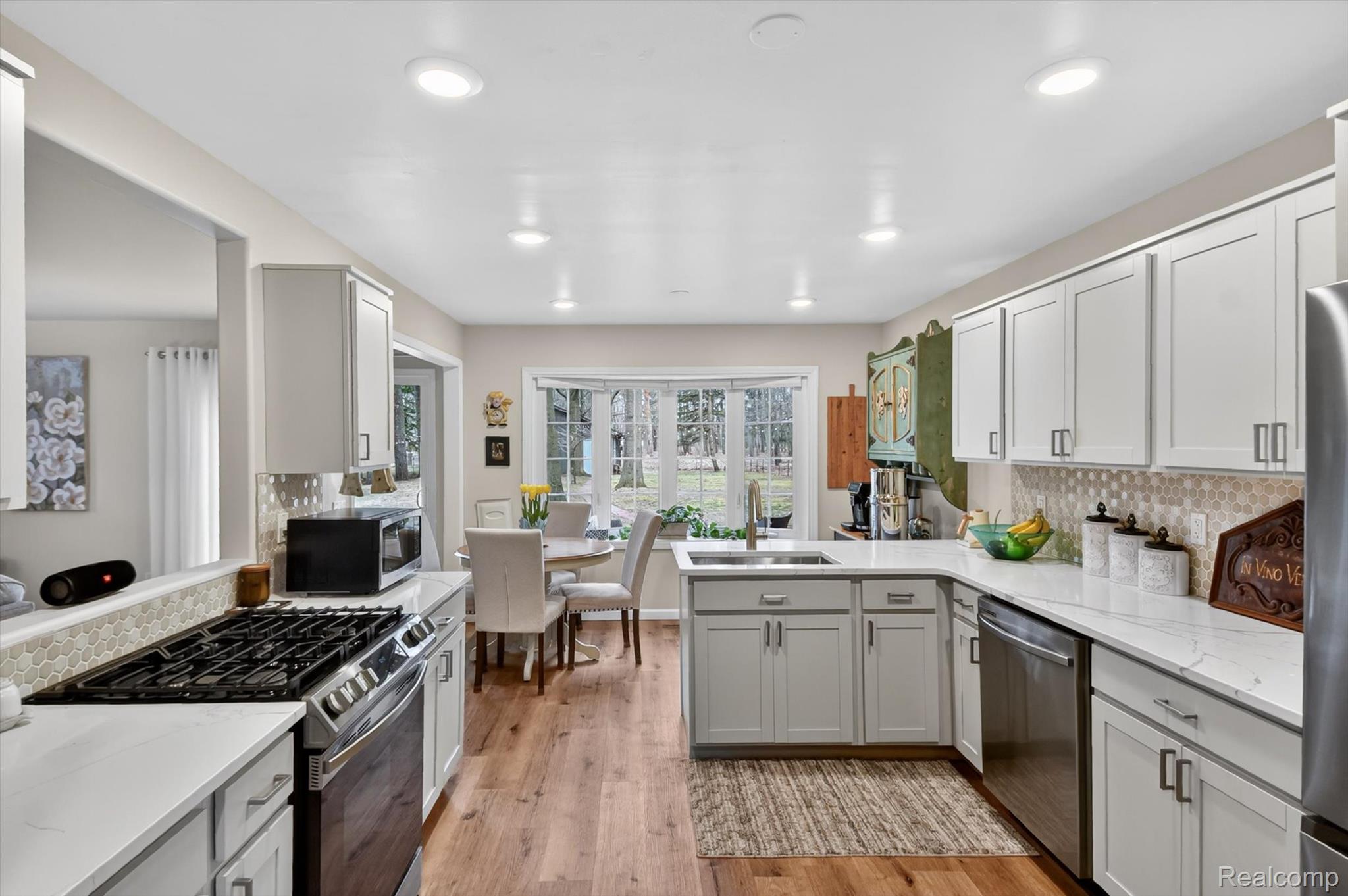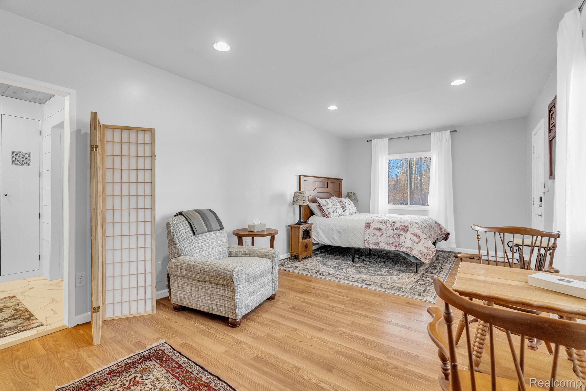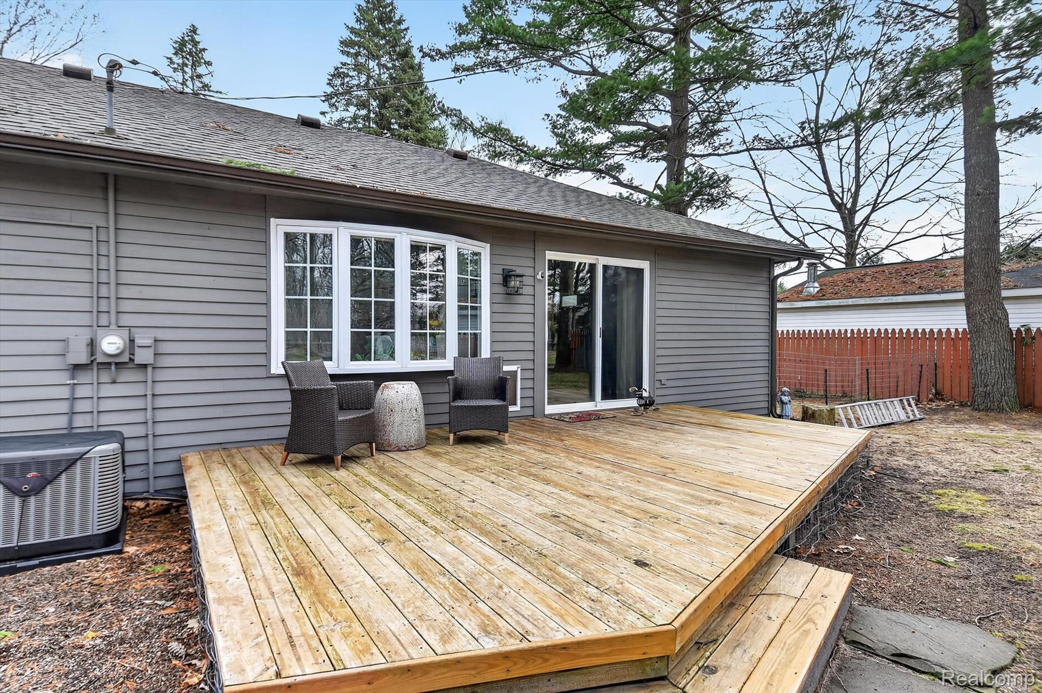 Move right into this Beautifully updated Ranch Home featuring a spacious, open layout! From the moment you stepthrough the welcoming entryway, you’ll feel at Home. The stunning Kitchen boasts Quartz Countertops, soft-close Cabinetry, and a stylish Tiled Backsplash, along with Newer Stainless Steel Appliances, including Washer & Dryer. This residence offers two full Bathrooms adorned with custom tile and modern vanities, with a Primary Bathroom featuring double sinks and a glass shower enclosure. Enjoy the comfort of the newer Furnace and Air Conditioning, and Luxury Vinyl Plank flooring throughout the Home. Gather around the cozy gas fireplace or step outside to the lovely deck overlooking your expansive fenced yard, which spans just over half an acre. The oversized two-car attached Garage includes pull down attic space for extra storage. A Unique Detached In-law suite provides an additional Bedroom, a full En-suite Bathroom, and a Kitchen equipped with a built in cooktop and farmhouse sink – perfect for guests or multi-generational living. This suite also features a custom Kitchenette and Vanity in the Bathroom, with a mini-split for Heating and Cooling. The 1.5 Car Detached Garage is insulated and drywalled, complete with it’s own mini split for heating & cooling and a laundry tub and shelving, making it a perfect workshop for projects.
