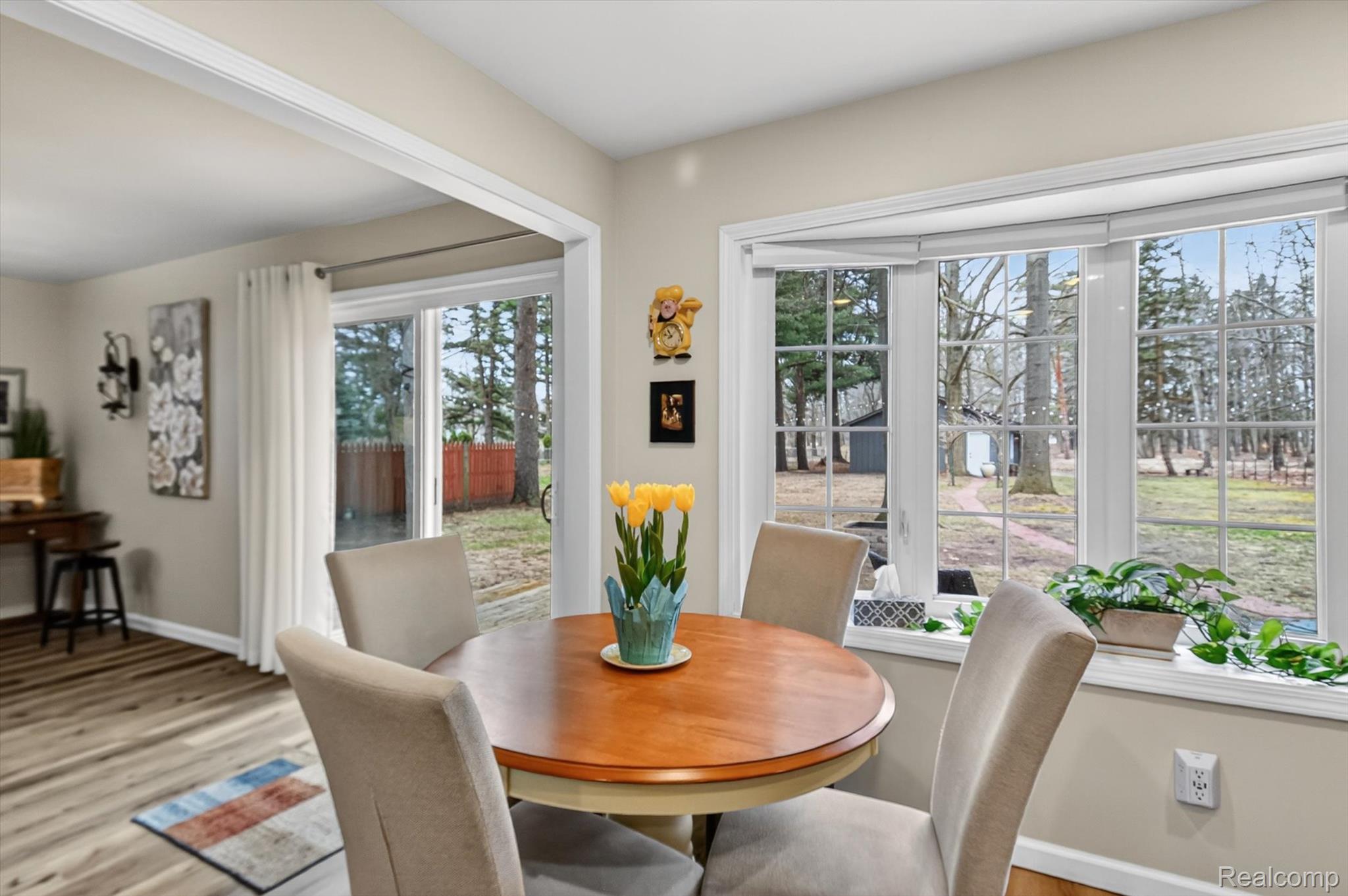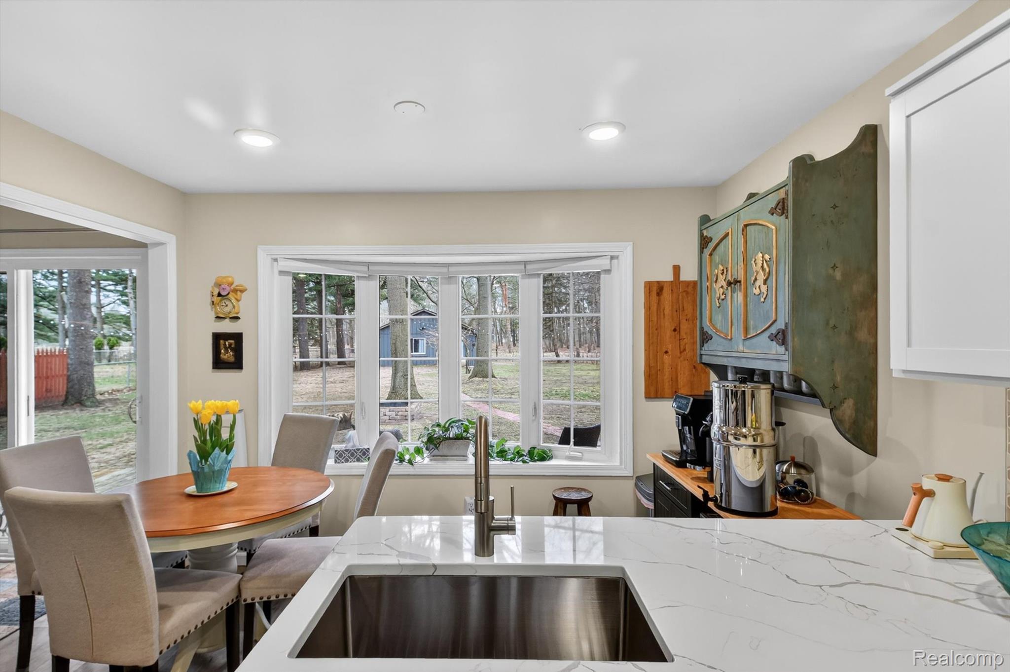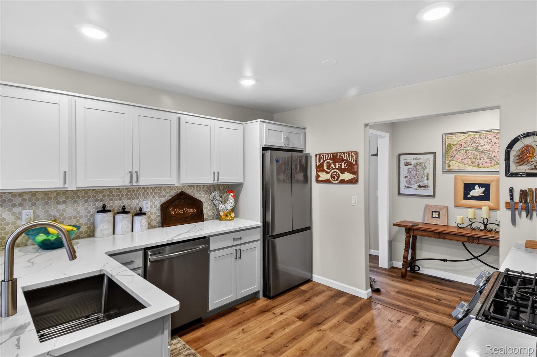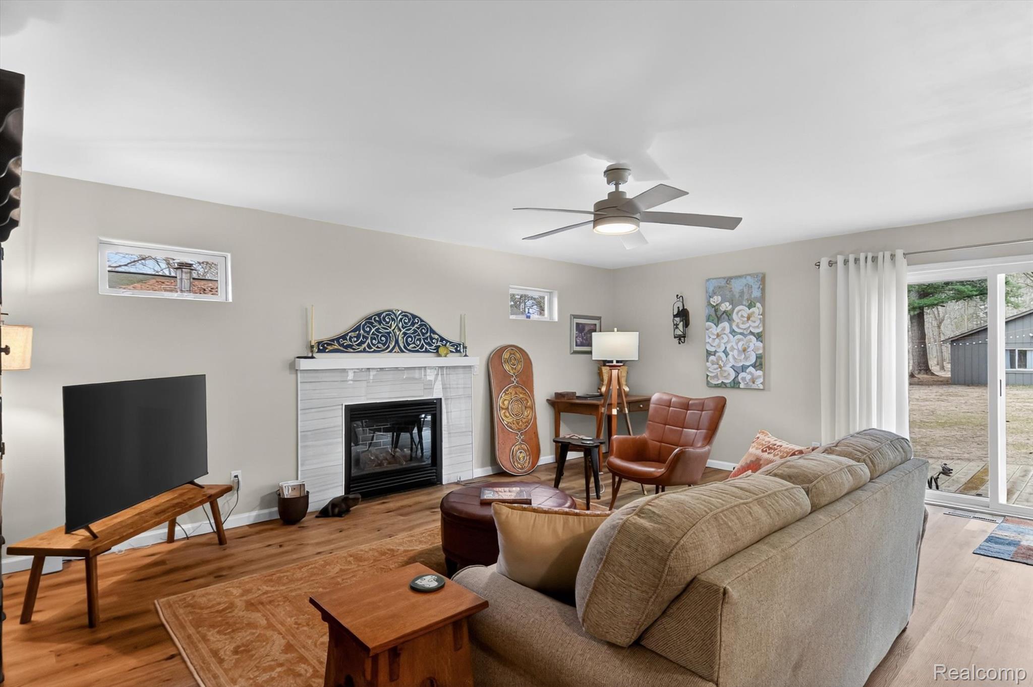 Move right into this Beautifully updated Ranch Home featuring a spacious, open layout! From the moment you stepthrough the welcoming entryway, you’ll feel at Home. The stunning Kitchen boasts Quartz Countertops, soft-close Cabinetry, and a stylish Tiled Backsplash, along with Newer Stainless Steel Appliances, including Washer & Dryer. This residence offers two full Bathrooms adorned with custom tile and modern vanities, with a Primary Bathroom featuring double sinks and a glass shower enclosure. Enjoy the comfort of the newer Furnace and Air Conditioning, and Luxury Vinyl Plank flooring throughout the Home. Gather around the cozy gas fireplace or step outside to the lovely deck overlooking your expansive fenced yard, which spans just over half an acre. The oversized two-car attached Garage includes pull down attic space for extra storage. A Unique Detached In-law suite provides an additional Bedroom, a full En-suite Bathroom, and a Kitchen equipped with a built in cooktop and farmhouse sink – perfect for guests or multi-generational living. This suite also features a custom Kitchenette and Vanity in the Bathroom, with a mini-split for Heating and Cooling. The 1.5 Car Detached Garage is insulated and drywalled, complete with it’s own mini split for heating & cooling and a laundry tub and shelving, making it a perfect workshop for projects.